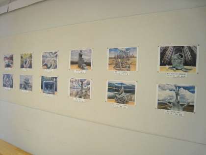 1階ギャラリーに6年生が図工授業で制作した「私のモニュメント」の作品写真を展示しています。今までの歩みを振り返り、自分なりのモニュメント(記念碑)をイメージして形を考え、ブロンズ粘土で表現しました。仕上がった粘土作品に人体模型を配置して客観的に作品をとらえ、作品を鑑賞しながら学習用タブレット端末で撮影しました。保護者の皆様、学校へお越しの際はぜひお立ち寄りください。