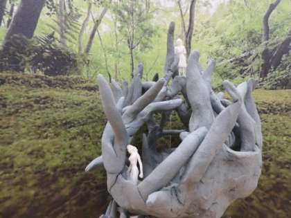 1階ギャラリーに6年生が図工授業で制作した「私のモニュメント」の作品写真を展示しています。今までの歩みを振り返り、自分なりのモニュメント(記念碑)をイメージして形を考え、ブロンズ粘土で表現しました。仕上がった粘土作品に人体模型を配置して客観的に作品をとらえ、作品を鑑賞しながら学習用タブレット端末で撮影しました。保護者の皆様、学校へお越しの際はぜひお立ち寄りください。