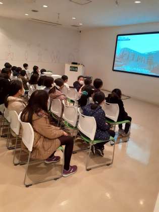 見学先の施設とオンラインでつなぎながら、説明や質問に答えてくださっています。