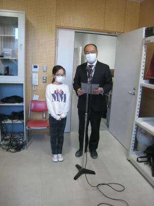 12月23日、各種コンクールへ応募して入選した子供たちの表彰を行いました。終業式では校長先生が2学期の成果、日常生活や学校行事で一人一人が役割を果たすことの大切さを話されました。児童代表の言葉は3年生が担当し、2学期に頑張ったことを堂々と発表できました。生活指導主任の先生からは冬休みにけじめをつけた生活を送るように子供たちに注意喚起がありました。