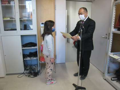 12月23日、各種コンクールへ応募して入選した子供たちの表彰を行いました。終業式では校長先生が2学期の成果、日常生活や学校行事で一人一人が役割を果たすことの大切さを話されました。児童代表の言葉は3年生が担当し、2学期に頑張ったことを堂々と発表できました。生活指導主任の先生からは冬休みにけじめをつけた生活を送るように子供たちに注意喚起がありました。