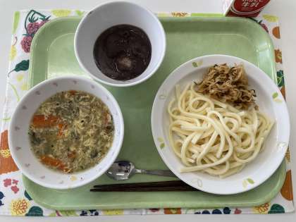 献立 七草かきたまうどん おしるこ はりはり漬け 牛乳