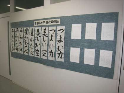 書き初め展が1/16〜1/20の日程で本日から始まりました。子どもたちが新春に心を込めて書いた毛筆や硬筆による書写作品を各クラスの廊下に展示しています。また、校長室前には学級代表作品を展示しています。保護者の皆様、お時間があれば学校へお越しいただき、子どもたちの力作をご鑑賞ください。