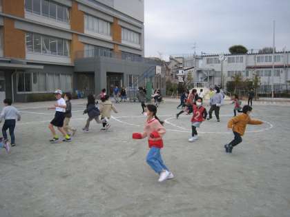 1月19日、昼休みに縦割り班(ともあそび)活動を行いました。6年生をリーダーとして異学年集団を編成し、校庭・体育館・教室に分かれての活動です。寒い中、フルーツバスケット、ドッジボール、鬼ごっこ、障害物競争などいくつもの遊びを縦割り班ごとに考えて皆で楽しく遊びました。