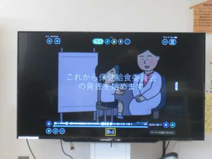 1月20日、朝の活動時間に校内テレビ放送による保険給食委員会集会を行いました。保健給食委員の子どもたちが校内でのケガを防ぎ、安全に過ごすことの大切さを寸劇を交えながら分かりやすく説明してくれました。