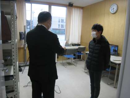 1月23日、放送による全校朝会があり、「小学校図画工作作品展」に出品する18名の児童を紹介しました。校長先生からは6年生の代表児童に出品賞を渡していただきました。