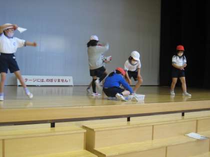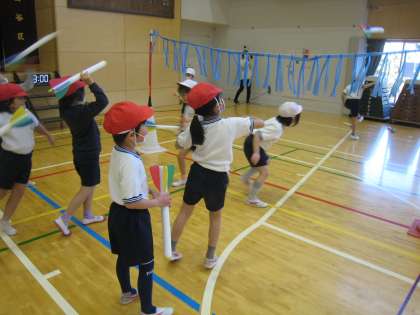 1月25日、第5回校内研究会を行いました。本日は校内研究主題「運動の楽しさや喜びを知り、自らの課題解決に取り組む児童の育成〜自ら考え、工夫する体育学習〜」を踏まえて1年1組を対象に単元「ボンバーゲーム」の体育授業を実施しました。子供たちは自分のめあてを設定し、先生たちが作った手作り教材を用いて楽しみながらボールゲームに臨みました。研究協議会では専任講師である大学教授の先生の指導を受けながら体育授業についての研究を深めました。