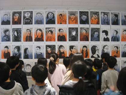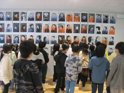 2月1日、4年生が図工授業で制作した木版画の作品を鑑賞しました。子供たちは、自分や友だちの作品の表し方の違いや良さに気付きながら互いの作品をじっくり鑑賞し合いました。