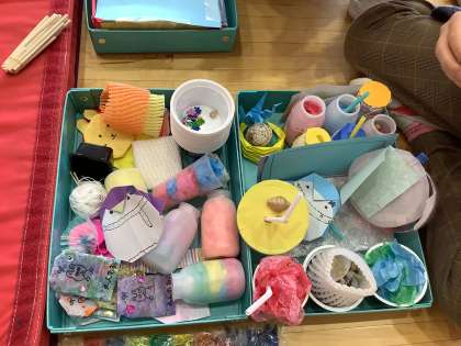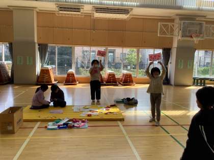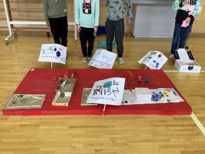 看板やポスターも作り、たくさんのお客さんを呼び込んでいました。1年生は景品をたくさんもらいました。