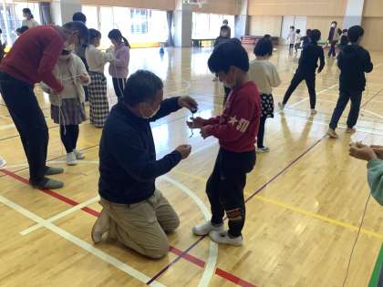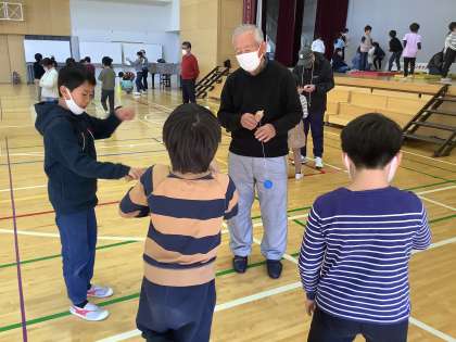 地域の方々をお招きして、昔遊びを行いました。たくさんの名人に、うまくいくコツを教えてもらいました。
