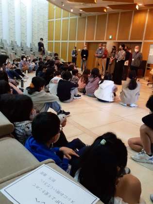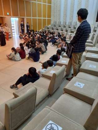 スタッフの方から、美術館のことや作品のことなどお話をしてくださっています。子供たちは、とても真剣に聞いて、鑑賞の気持ちを高めています。