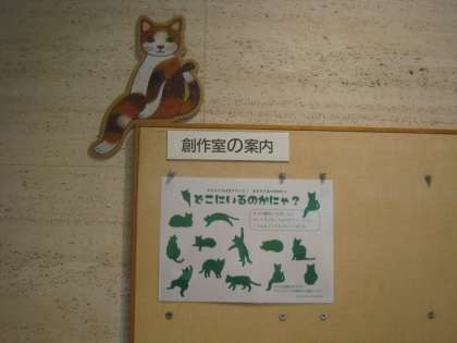 美術展を盛り上げるため館内に配置された14匹の猫レリーフを探すウォークラリーのような企画もありました。