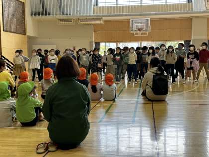 体育館で、じゃんけん列車や猛獣がりなどの遊びをした後、