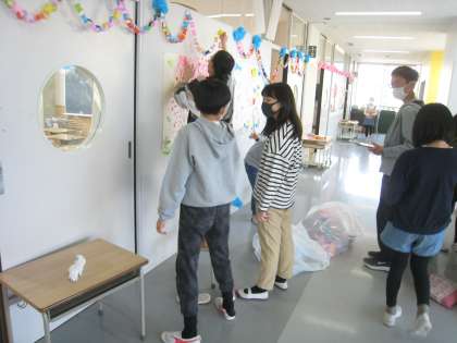 4月5日、新6年生が登校して入学式の準備を行いました。教室配置の変更にともなう机・椅子の移動、1年生の教室の装飾と配布物の準備、式場の整備などを分担しました。最高学年の自覚を感じさせるような熱心さで取り組んだので、予定よりはるかに早く仕事が終わりました。新6年生の皆さん、ありがとう!