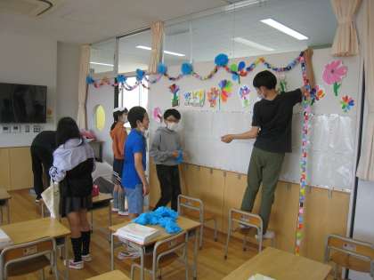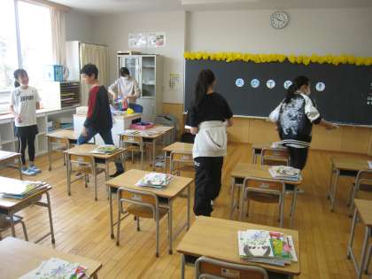 4月5日、新6年生が登校して入学式の準備を行いました。教室配置の変更にともなう机・椅子の移動、1年生の教室の装飾と配布物の準備、式場の整備などを分担しました。最高学年の自覚を感じさせるような熱心さで取り組んだので、予定よりはるかに早く仕事が終わりました。新6年生の皆さん、ありがとう!