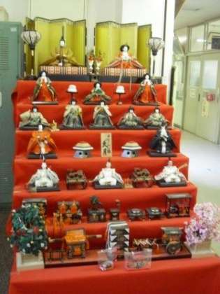 城山小学校では、毎年ひな祭りが近づくと、1階の階段下にひな人形を飾ります。今年も、2月に入ってから、主事さんたちがおひな様を飾ってくれました。
