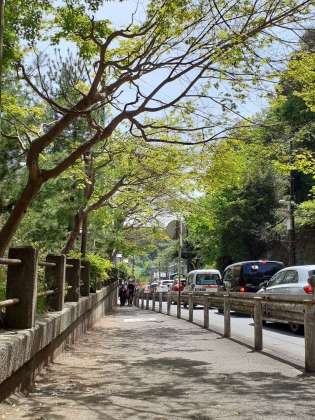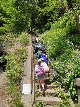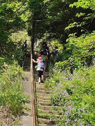 とても春らしい空気のなか、グループごとにハイキングに出発しました。グループごとに6年生が工夫を凝らした準備をしています。