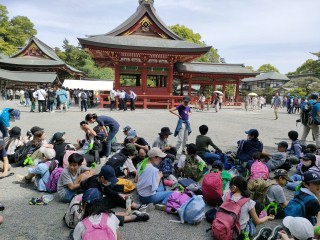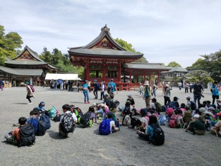 子どもたちはお弁当を食べ終わり、寿福寺へ抜ける難所の坂道を下り、鶴岡八幡宮でゴール、帰路へつきました。