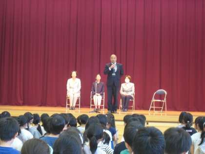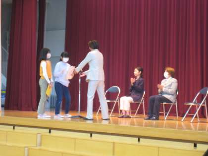 4月28日、4年ぶりに体育館で令和5年度離任式を行いました。3月に離任された先生方を迎え、代表児童による感謝の言葉と皆で書いた手紙をお渡ししました。