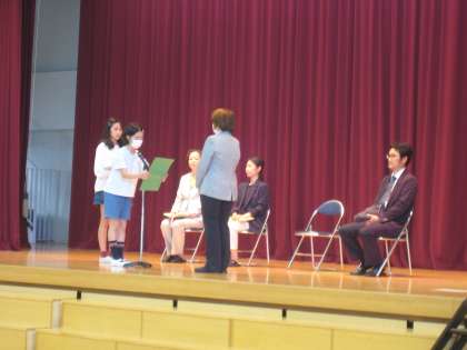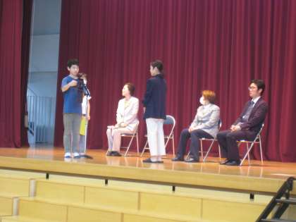 4月28日、4年ぶりに体育館で令和5年度離任式を行いました。3月に離任された先生方を迎え、代表児童による感謝の言葉と皆で書いた手紙をお渡ししました。残念ながら学級閉鎖により登校できなかった代表児童はオンラインで感謝の言葉を送りました。