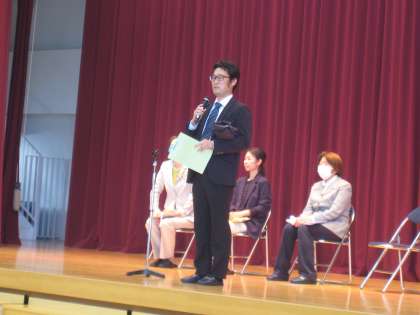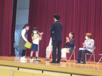 4月28日、4年ぶりに体育館で令和5年度離任式を行いました。3月に離任された先生方を迎え、代表児童による感謝の言葉と皆で書いた手紙をお渡ししました。