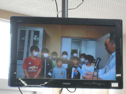5月15日、雨天のため校庭で予定していた全校朝会を放送朝会に変更しました。校長先生のお話や城山サッカークラブの表彰、運営委員の児童が運動会のスローガンを発表しました。