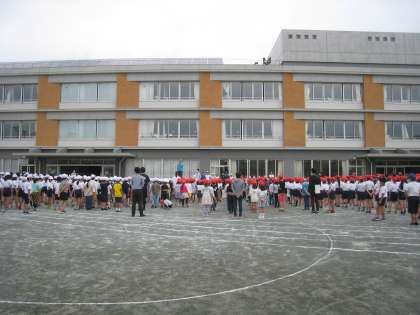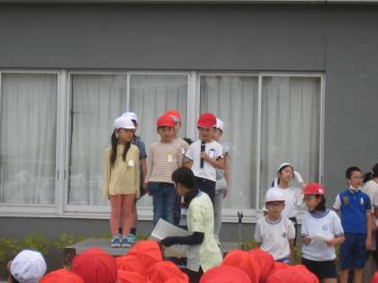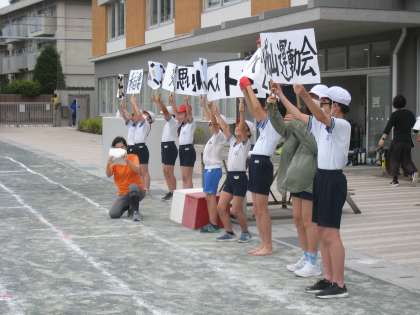 運営委委員の児童がスローガンを発表したり、1年生による「はじめの言葉」の練習を行いました。