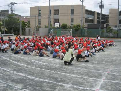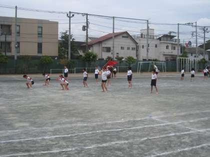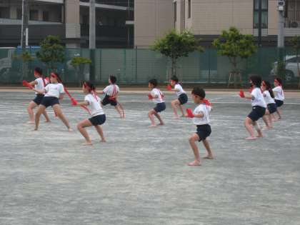 応援団の児童が指揮を執り、応援合戦の練習を行いました。赤組の様子です。