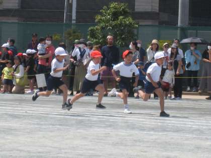 1年生は初めての運動会で50mを精一杯頑張って走りました。