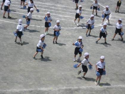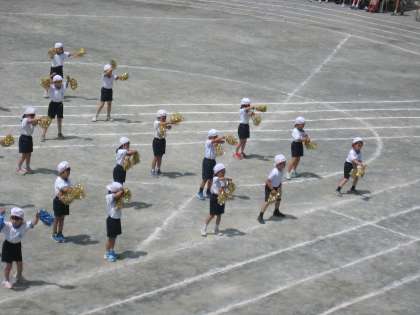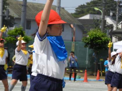 1年生は練習の成果を発揮して表現運動「城山おばけ」を発表しました。子どもたちは練習の成果を発揮して可愛らしい3色のおばけを演じました。
