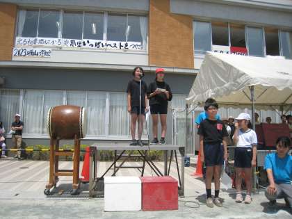 児童代表による終わりの言葉では、6年生の代表児童がそれぞれに運動会への思いを込めた話をしました。本日は多くの保護者・地域の皆様にご参観いただき、ありがとうございました。子どもたちの大きな励みとなりました。