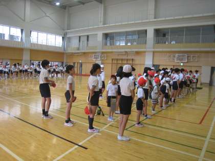 6月6日、子どもたちの体力の状況を把握するとともに運動能力向上を目的として体力テストを行いました。1・2校時は1年生が6年生からサポートしてもらいながら校庭でソフトボール投げに取り組み、体育館では、上体お越し、反復横跳び、立ち幅跳び、長座体前屈を行いました。体育館での様子をご紹介します。
