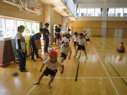 6月7日も昨日に引き続き体力テストを行いました。1・2校時は3年生が校庭でソフトボール投げに取り組み、体育館では、上体お越し、反復横跳び、立ち幅跳び、長座体前屈を行いました。本日は国士舘大学の教員志望の学生が体育授業の一環として体力テストの補助役を務めてくれたこともあり大変スムーズに進めることができました。