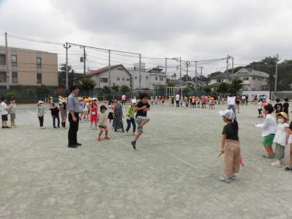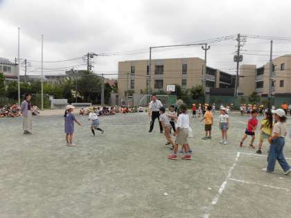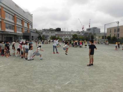6月27日、朝の活動時間にわくスポ(体育的な取組)を行いました。今年度は年間を通して「長縄」に取り組み、各クラスごとの目標回数を設定して練習に励みます。