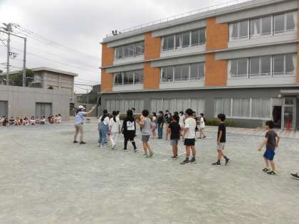 6月27日、朝の活動時間にわくスポ(体育的な取組)を行いました。今年度は年間を通して「長縄」に取り組み、各クラスごとの目標回数を設定して練習に励みます。