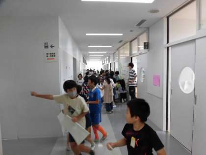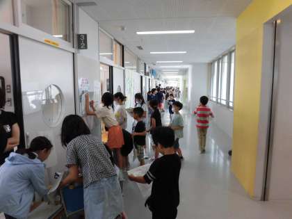 7月6日、朝の活動時間に集会委員会による児童集会が行われました。内容は、教室の前に問題の用紙とスタンプが用意され、全校児童が思い思いの教室へ行きクイズに答えるというものでした。