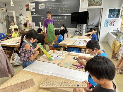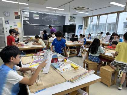 3年1組の授業の様子を紹介します。子どもたちは図工の授業で釘打ちの練習課題に取り組んでいました。