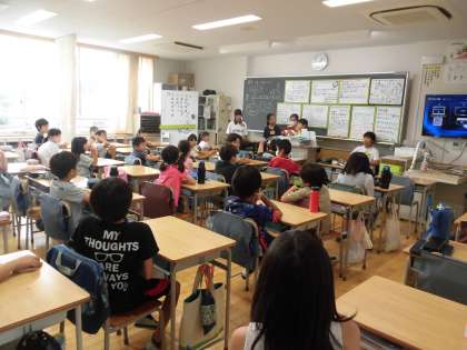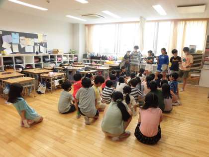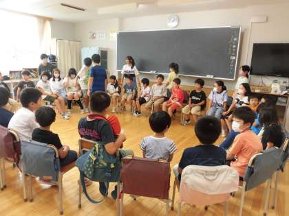 7月14日、縦割り班活動(ともあそび)を行いました。6年生をリーダーとして全学年を12班に分け、異学年交流を図るため6年生が毎回活動内容を考えます。本日は、教室、校庭、体育館に分かれて活動しました。