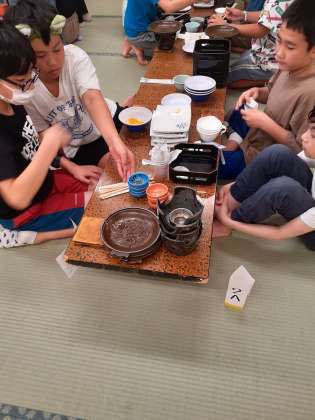 片付けも、つくってくださった方に感謝を込めて、きちんとできていました。いよいよキャンプファイヤーです。