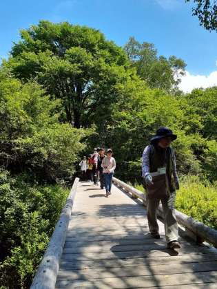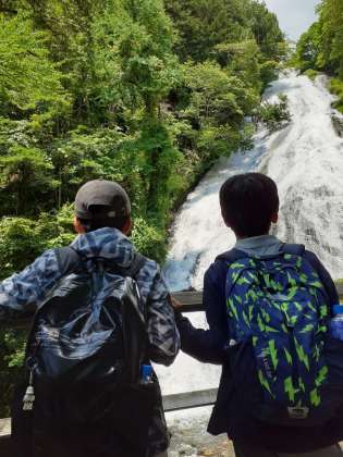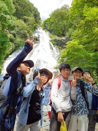 戦場が原のハイキングは、湯滝に到着しました。とても天気もよかったのですが、涼しい風が、心地よく感じられるなかで歩くことができました