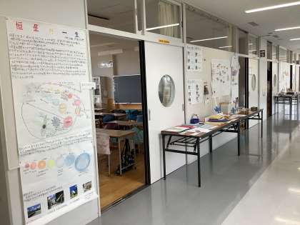 9/4~9/9の期間、夏休みの自由研究で子どもたちが制作した作品を各教室の廊下に展示しています。