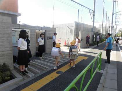 9/4〜9/8の期間、世田谷中学校の中学生や保護者の方にもご協力いただき、学び舎あいさつ運動を実施しています。本日は気温が高い朝ですが、子どもたちの元気な挨拶の声が正門に響いていました。