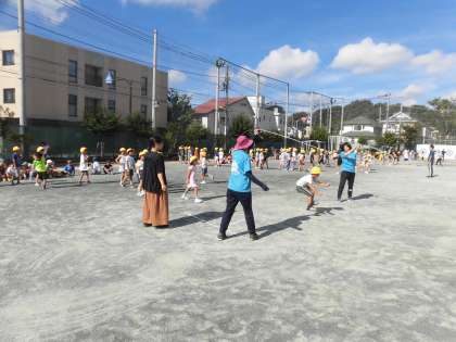 9月14日、朝の活動時間にわくスポを行い、来月予定されている長縄大会へ向けてクラスごとに長縄の練習を行いました。