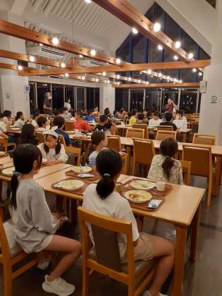 カレーライスをいっぱい食べました。これからキャンプファイアです。