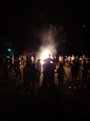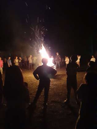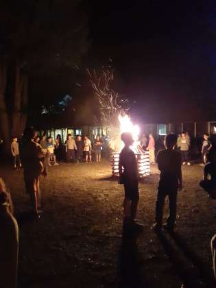 雨が降ってきましたが、願いが通じ、20分遅れでキャンプファイアスタートです