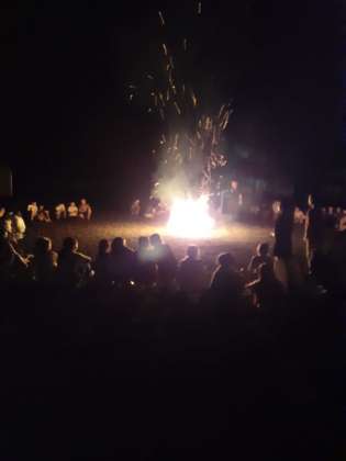楽しいひとときも終わりに近づきました。キャンプファイアの係の人たちの準備のおかげです。このあと、ミニナイトハイクに行ってきます。ホタルを見ることができるでしょうか。
