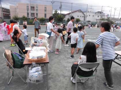 9月23日、PTAと青少年地区委員会の皆様が中心となって「城山こどもまつり」が開催されました。オープニングの5・6年生有志による「ソーラン」でお祭りが始まり、たくさんのコーナーが開店し、子どもたちは様々なゲームを楽しんでいます。