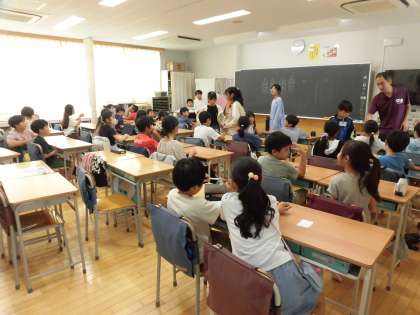 9月26日、縦割り班活動(ともあそび)を行いました。6年生をリーダーとして全学年を12班に分け、異学年交流を図るため6年生が毎回活動内容を考えます。本日は、教室、校庭、体育館に分かれて活動しました。