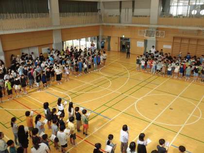 9月28日、体育館で音楽朝会を行いました。子どもたちは元気よく「手のひらを太陽に」を声高らかに歌いました。