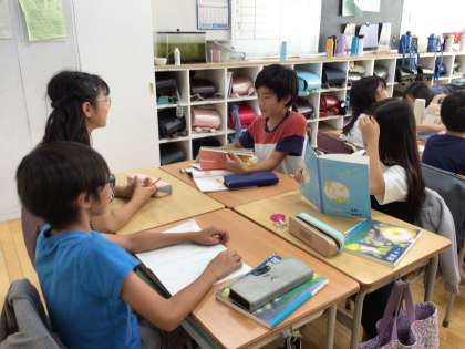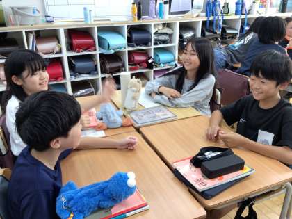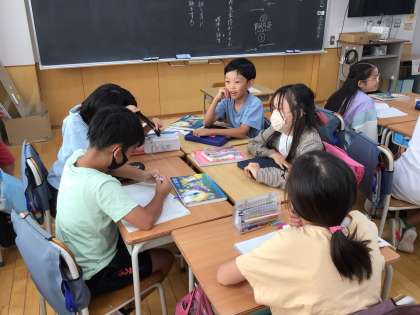 国語科「対話の練習」では「どちらを選びますか」をテーマに、犬をすすめるチームと、ねこをすすめるチームに分かれて、それぞれの考えを伝える話し合いを行いました。